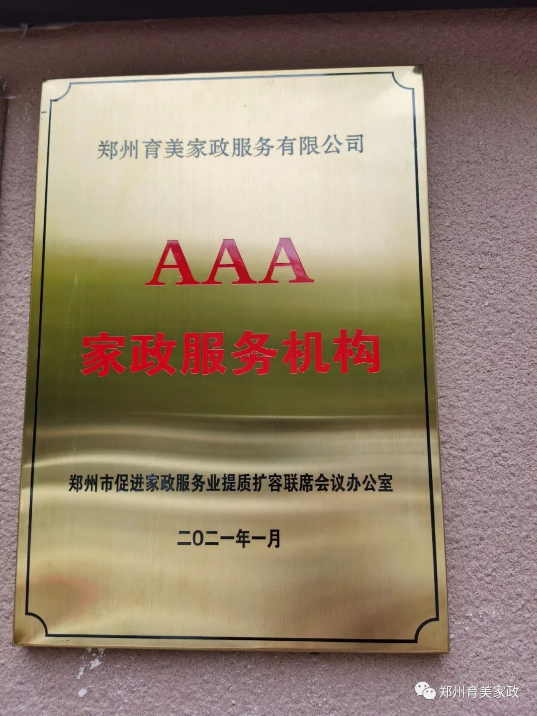 郑州育美家政服务有限公司成立于2015年5月,是经郑州市工商管理局批准注册的一家专门服务于母婴护理、婴幼儿家庭护理的有限责任公司。2020年被郑州市发展与改革委员会、郑州市商务局评为“郑州市首批三星级家政服务机构”。为河南省家庭服务行业协会常务理事单位,郑州市家庭服务行业协会监事单位。于2015年-2020年连续五年被郑州市家庭服务行业协会评为《先进单位》、《优秀培训机构》、《诚信经营单位》、郑州市第七届家政服务技能竟赛《优秀组织奖》、郑州市妇联巧媳妇工程《巾帼家政示范基地》、郑州市妇联巾帼建功标兵称号单位。经过六年多的发展,现有公司总部结合六个社区服务网点开展综合性、专业性、便民性的家庭入户服务。